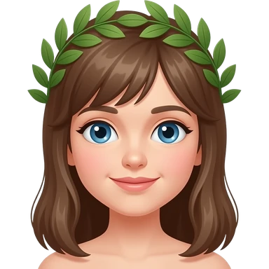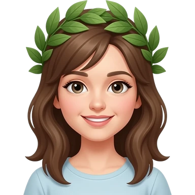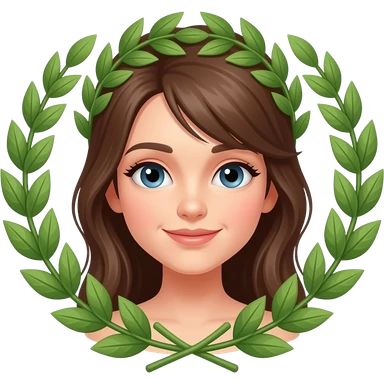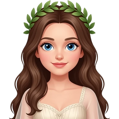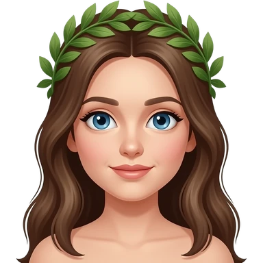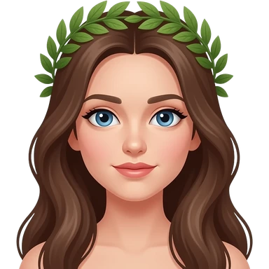 Ragazza viso sottile occhi azzurri capelli castani lunghi corona alloro solo in testa emoji