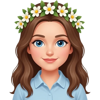 Ragazza occhi azzurri capelli castani lunghi con camicia corona alloro con fiori solo in testa emoji
