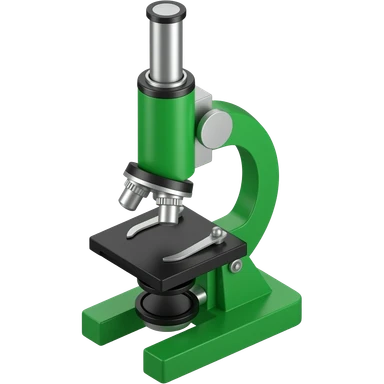 Minimalist 3D microscope, emerald green and silver metallic accents, sleek modern design, isometric view. emoji