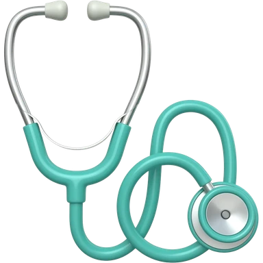 Modern 3D stethoscope, bright teal and chrome silver, sleek curves, professional medical aesthetic, vibrant color. emoji