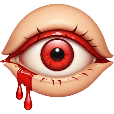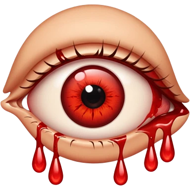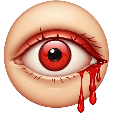 creat a normal eye that is not attached to the skin, make it be red and make him drop a bloddy tear emoji
