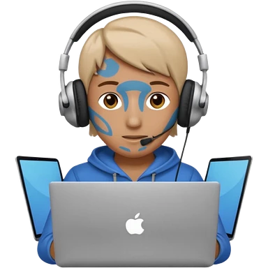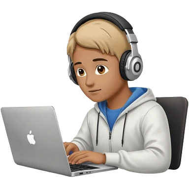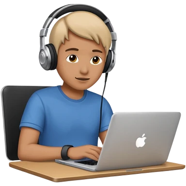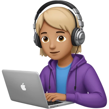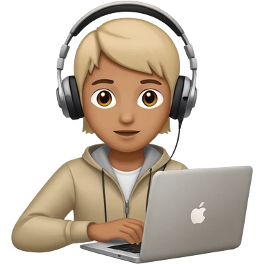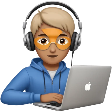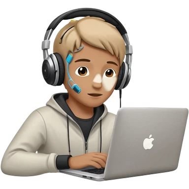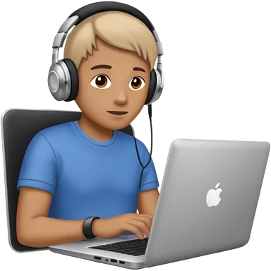 laptop ile çalışan kulaklık tana biri, bilgisayar logosuz olsun emoji