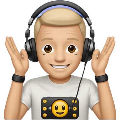 kulaklık takan önünde bilgisayarı olan biri emoji
