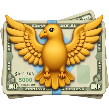 1 billete con 1 ala blanca a cada lado, no hay caras, solo alas emoji