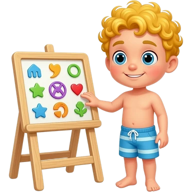 Touch and learn activity desk my body yellow curly hair boy with swim shorts emoji