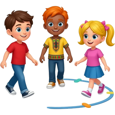 Hooplakidz tv Ring around the rosie One boy Brown Hair And Red Shirt One boy Orange hair Yellow Shirt One Boy African Shirt And A Girl With Yellow 2 Ponytails pink bows Is Walking round the circle emoji