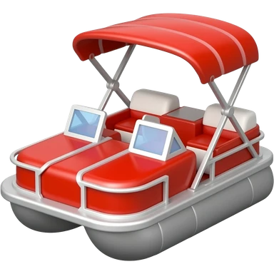 Red sided pontoon, with three hulls, retracted bikini top emoji