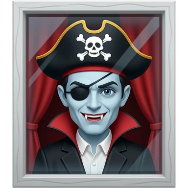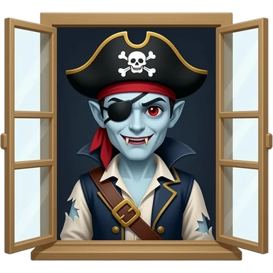 A very creepy vampire with a pirate hat behind a window emoji