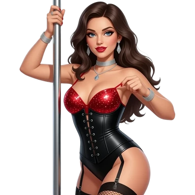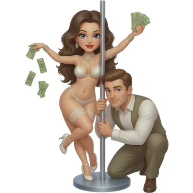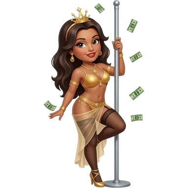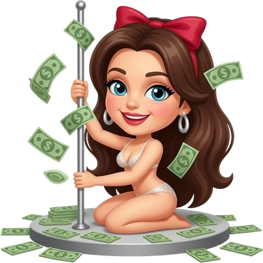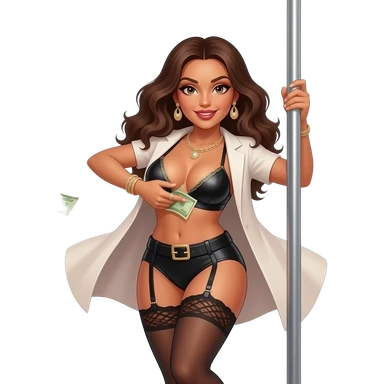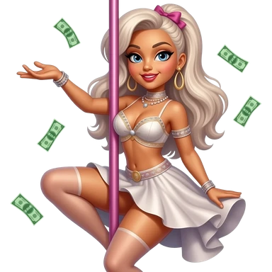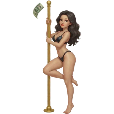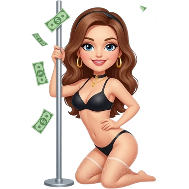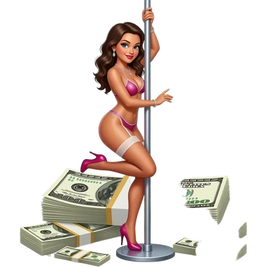 Sexy stripper dancing on a stripper pole with money and she has almost no clothes on on emoji