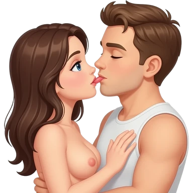 Naked girl with her boobs visable and boy with his penis visable having sex emoji