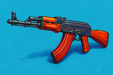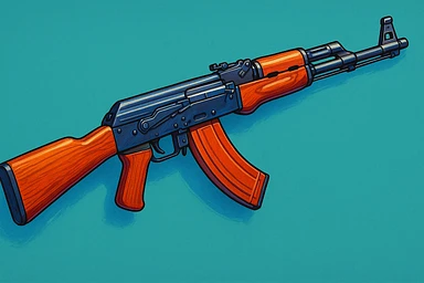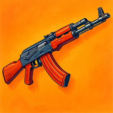 Сгенерируй мне АК 47 в чуть рисованном стиле, ярко объемно и красочно! на однородном фоне emoji