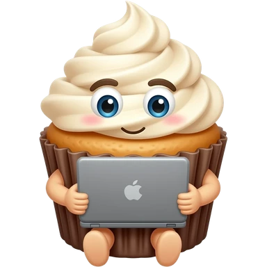 cupcake, concentrated on work with a laptop in its hands emoji