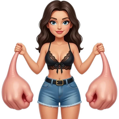 Une femme très séduisante avec une petite tenue qui tient deux teub emoji