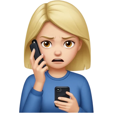 are you crazy? there is two phone..........only one phone and the girl's feeling is not so embarrassed or angry. please create 'angry and embarrassed girl looking at her 'one' cell phone' emoji