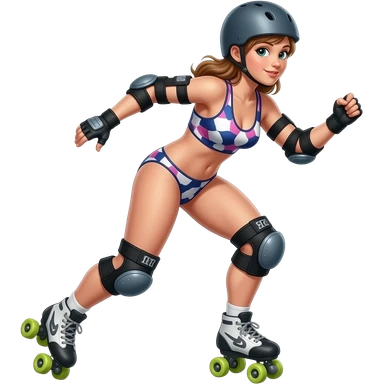 Rollerderby player with panty on the helmet. And in skate style. Like cool and hip not chic. And more in action emoji