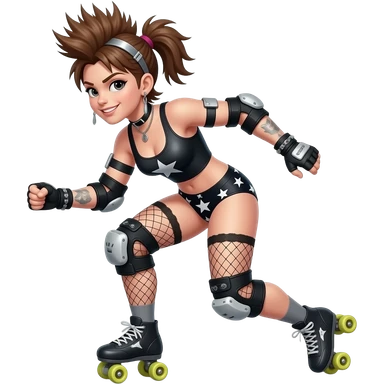 Rollerderby jammer with a panty with the star. And in skate style. Like cool and hip not chic. And more in action emoji
