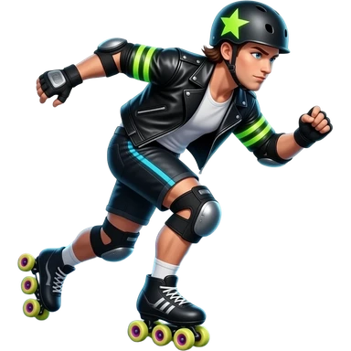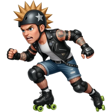 Rollerderby jammer. And in skate style. Like cool and hip (a typical butch). And more in action. And with the star on the head. emoji