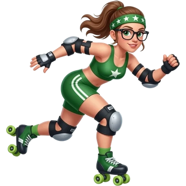 Rollerderby jammer. And in skate style. Like cool and hip (a non binary person without glasses and more in green). And more in action. And with the star on the head. emoji
