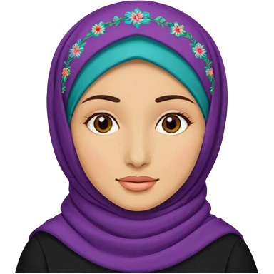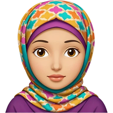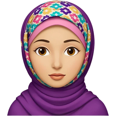 woman wearing a cream colored pashmina hijab eating meatballs emoji