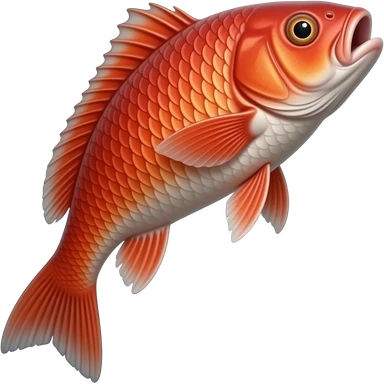 realistic red fish emoji, jumping, detailed scales, white background, emoji style emoji
