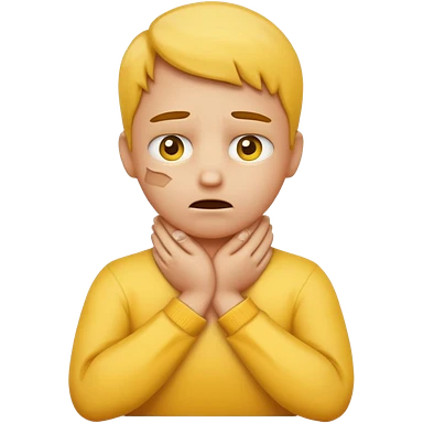 Yellow face emoji strangling itself with 2 arms crossed and hands saround neck emoji