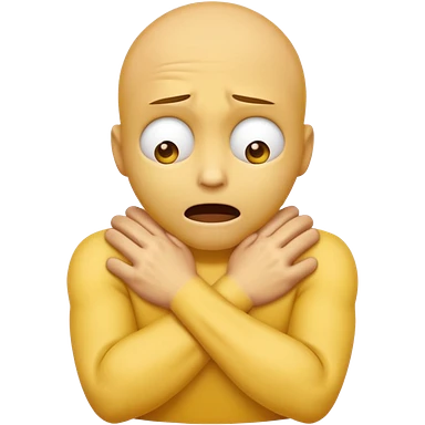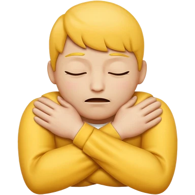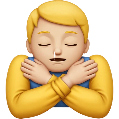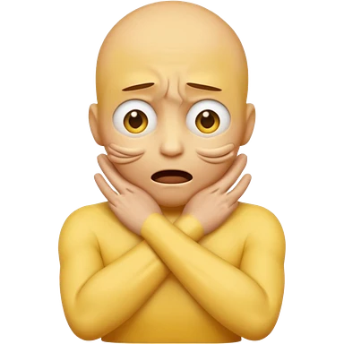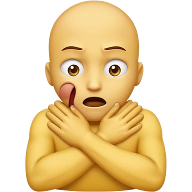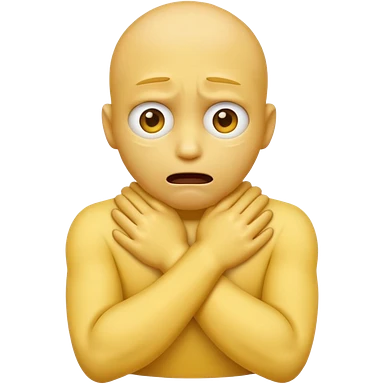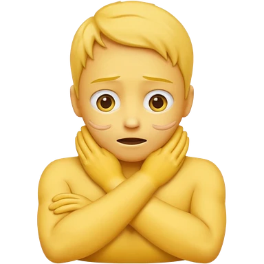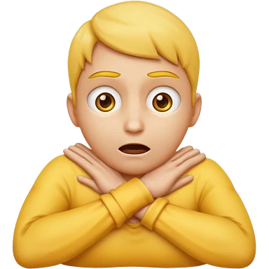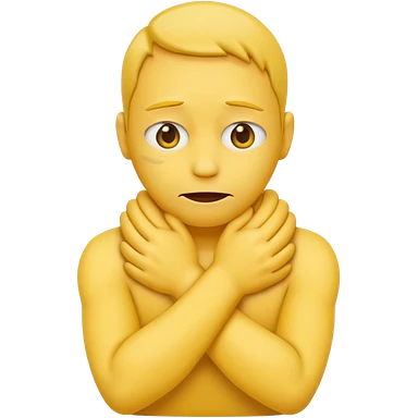 Yellow face emoji strangling itself with 2 arms crossed emoji