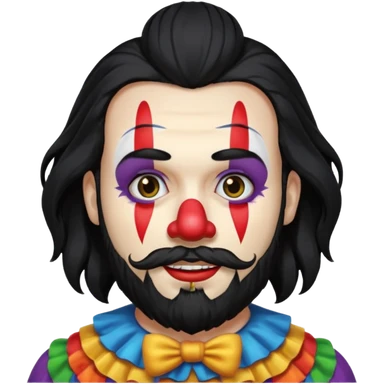 Long black hair and beard clown emoji