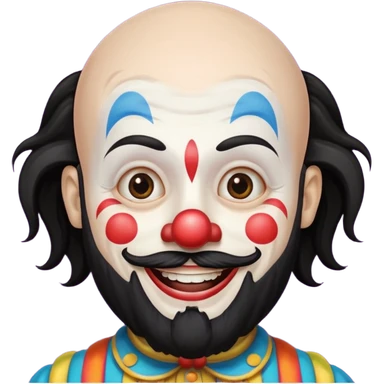 Long black hair and beard clown bald emoji