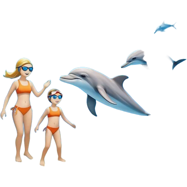 ]가족이 해변에서 돌고래 스노쿨링 하는 거 만들어줘 emoji