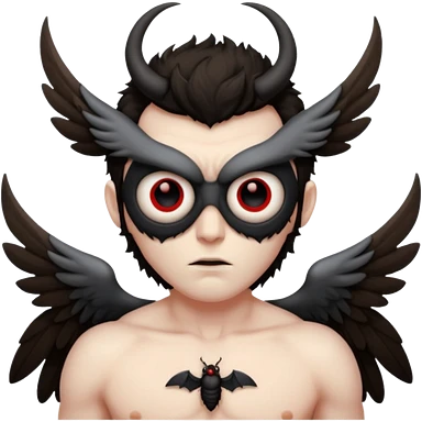 A sexy black and red moth with glowing red eyes with a manly human like body emoji