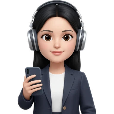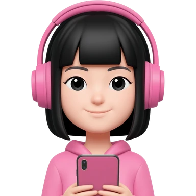 👩🏻💼وسماعة وردي📱وشعر اسود emoji
