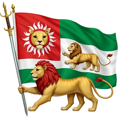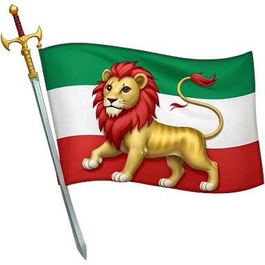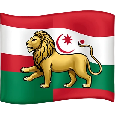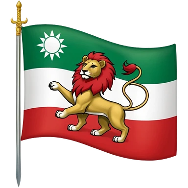 The flag of Iran is green at the top, white in the middle, and red at the bottom, with the symbol of the lion and the sun in the middle. The lion is looking at the robot and has a sword in his right hand, and the sun is behind the lion. emoji