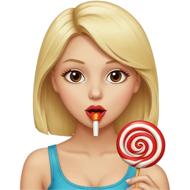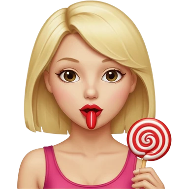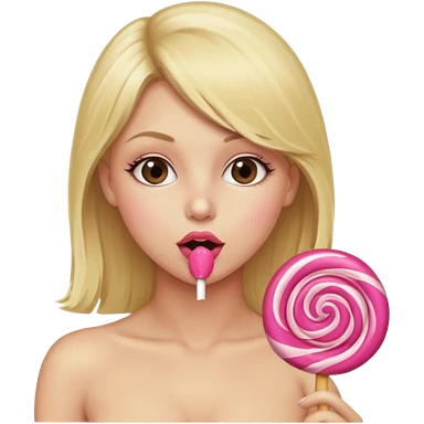 A xxx naked blonde female sucking on a lollipop seductively with nice tits emoji