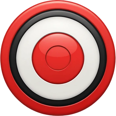 Red circle with a white circle inside and inside the white circle is a black circle emoji