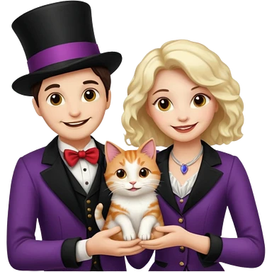 magician couple and their pet cat emoji