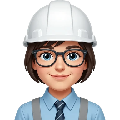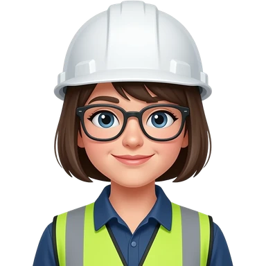 short hair girl with eyeglass engineer with white hardhat, with reflector suit emoji