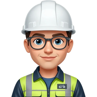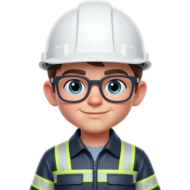 short hair boy with eyeglass engineer with white hardhat, with reflector suit emoji
