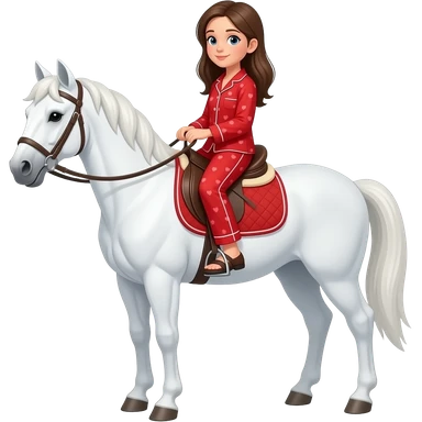 Cartoon white horse with bridles and saddle A girl riding With red pajamas emoji