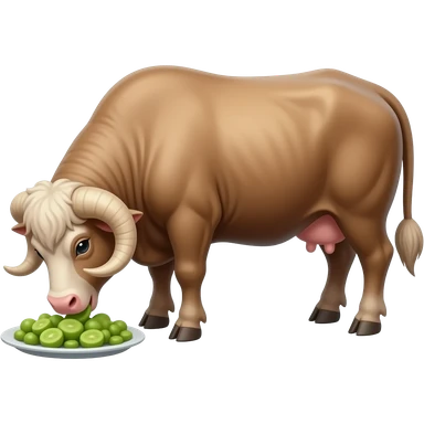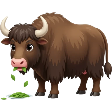 Cartoon brown yak eating emoji