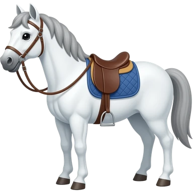 Cartoon white horse with bridles and saddle emoji