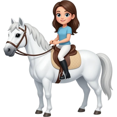 Cartoon white horse with bridles and saddle A girl riding emoji