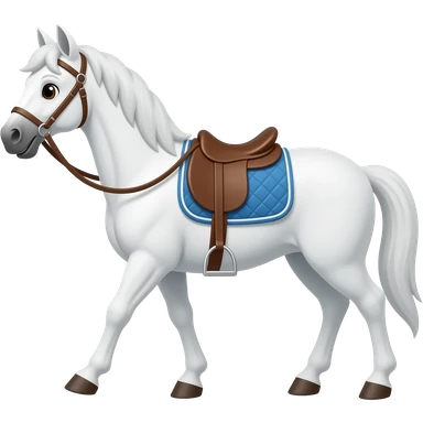 Cartoon white horse with bridles and safdle walks emoji