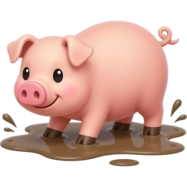 Cartoon pig on fours rolling in the mud emoji