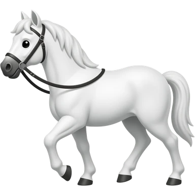 Cartoon white horse with bridle walks emoji