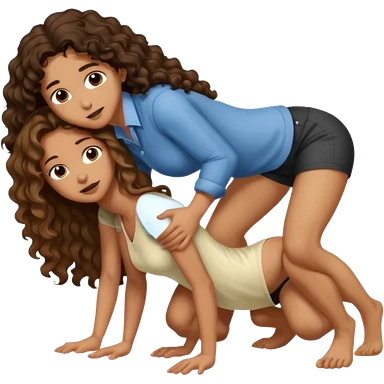 Light brown wavy long hair big butt on all fours with a dark hair curly big dick man on his knees behind her doggy style sex position emoji
