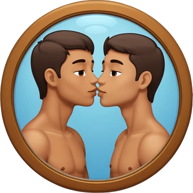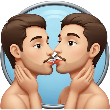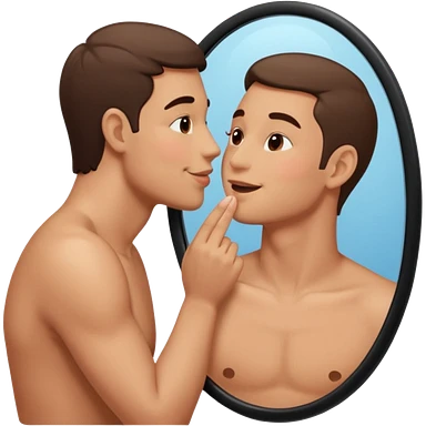 Narcissist fully dressed man looking in a mirror and kissing his reflection emoji