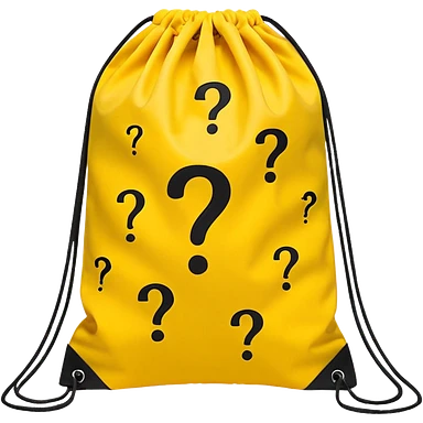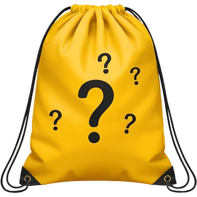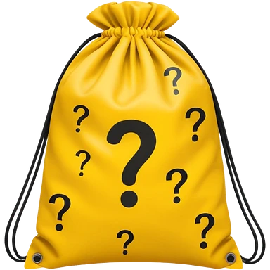 tied bag printed with q&a overstuffed with yellow question marks emoji