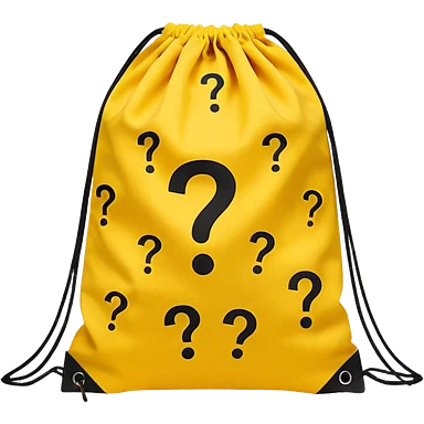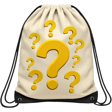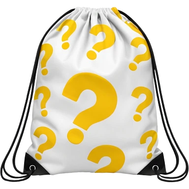 drawstring bag printed with overstuffed with yellow question marks emoji