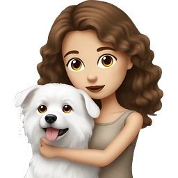beautiful girl with brown hair with her cream white spitz dog emoji