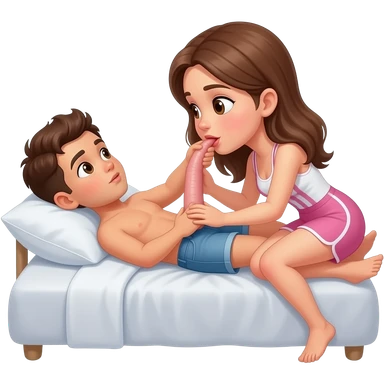 Girl sucking boys penis on bed emoji